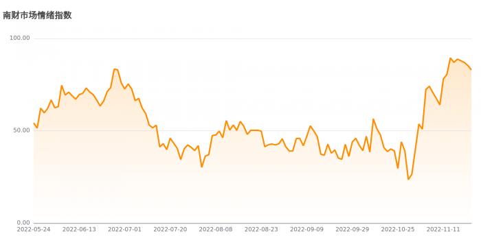 今日南财市场情绪指数为82.9,较前一交易日85.3下跌,市场投资热度降低。
