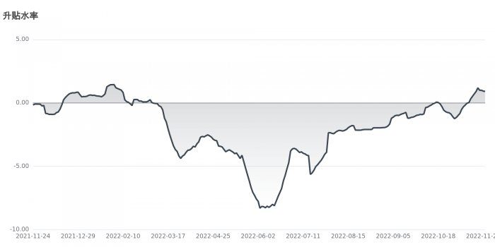 今日该指标值为0.91%,目前该指标处于近一年较高区间,说明投资者认为当前A股市场相对较强。反映期货市场投资者对市场的看法,该指标越高说明投资者认为当前市场较强,越低则说明认为市场相对较弱,因而与上证指数正相关。