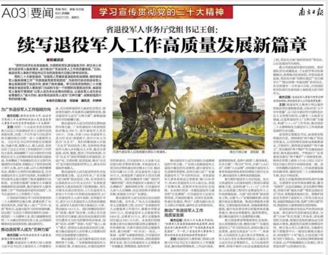 南方日报:省退役军人事务厅将拿出哪些实招好招,推动退役军人工作高质量发展?