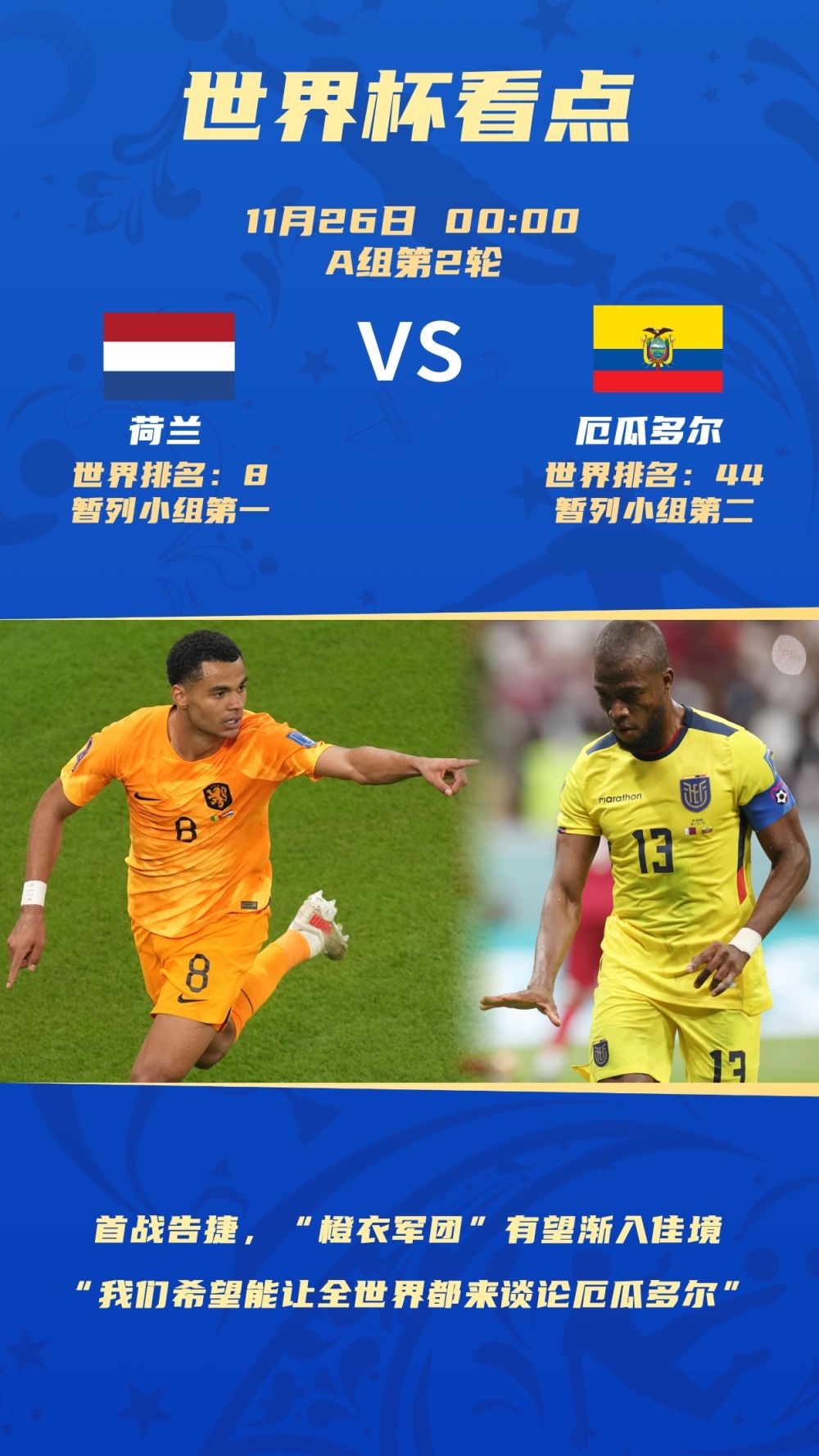 卡塔尔世界杯25日迎来小组第二轮首个比赛日的四场较量,谁将成为本届比赛第一支晋级16强的队伍?这是当日的最大悬念,荷兰队、英格兰队和厄瓜多尔队都有可能率先撞线。