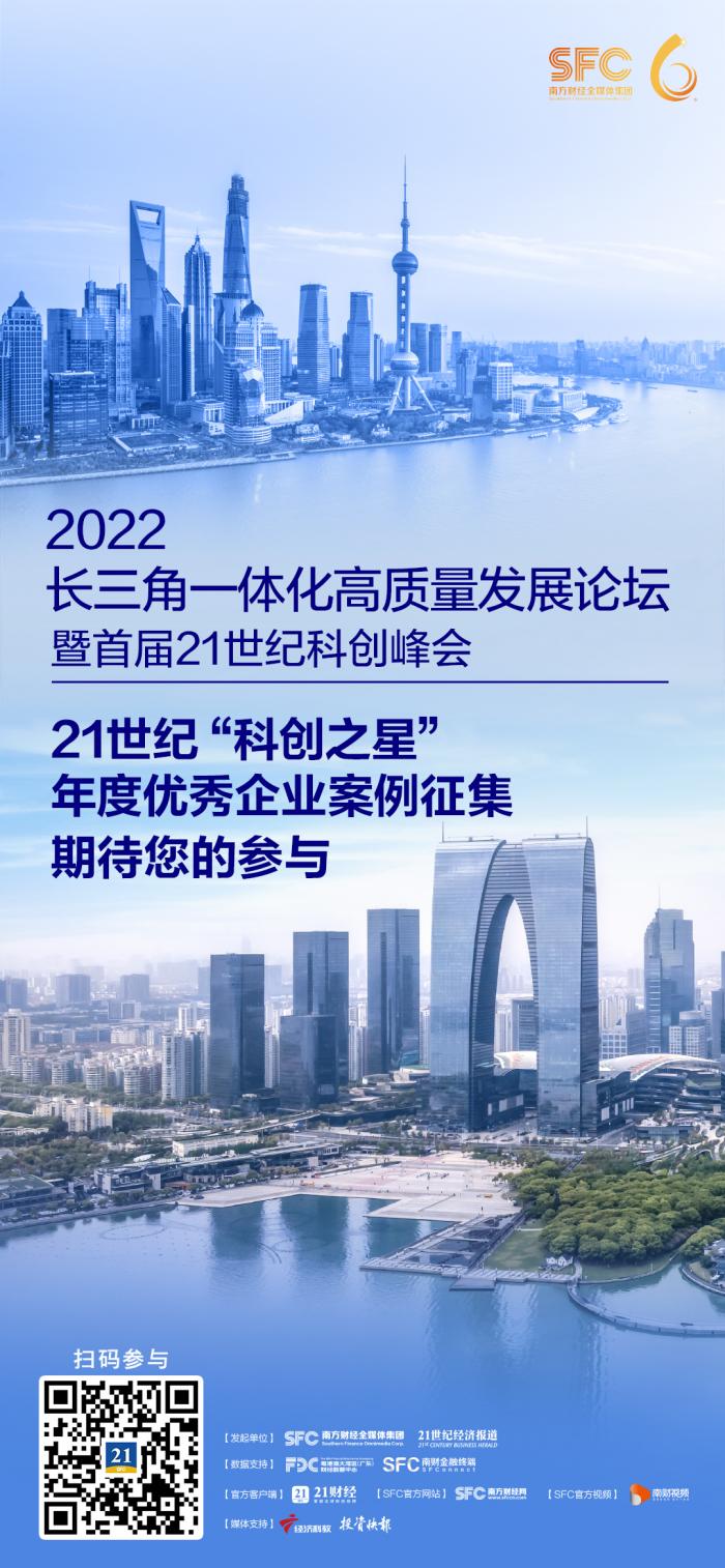 即日起正式启动21世纪“科创之星”年度优秀企业案例征集申报,最终结果将在2022长三角一体化高质量发展论坛暨首届21世纪科创峰会上发布。