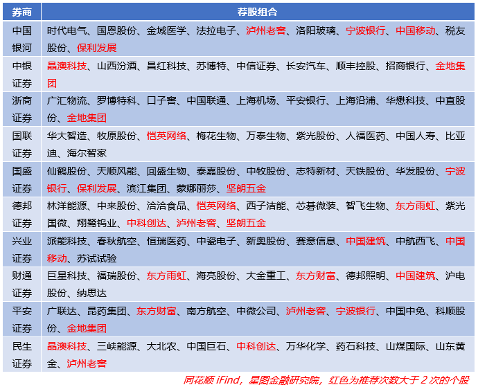 其次12月各大券商也如期推出了看好的标的,截至12月5日,32家券商公布了12月的荐股组合,共计285只,以下是部分券商12月荐股组合。
