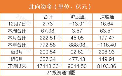 据21投资通智能监测,北向资金今日净买入2.73亿元,其中沪股通净卖出13.91亿元,深股通净买入16.64亿元。