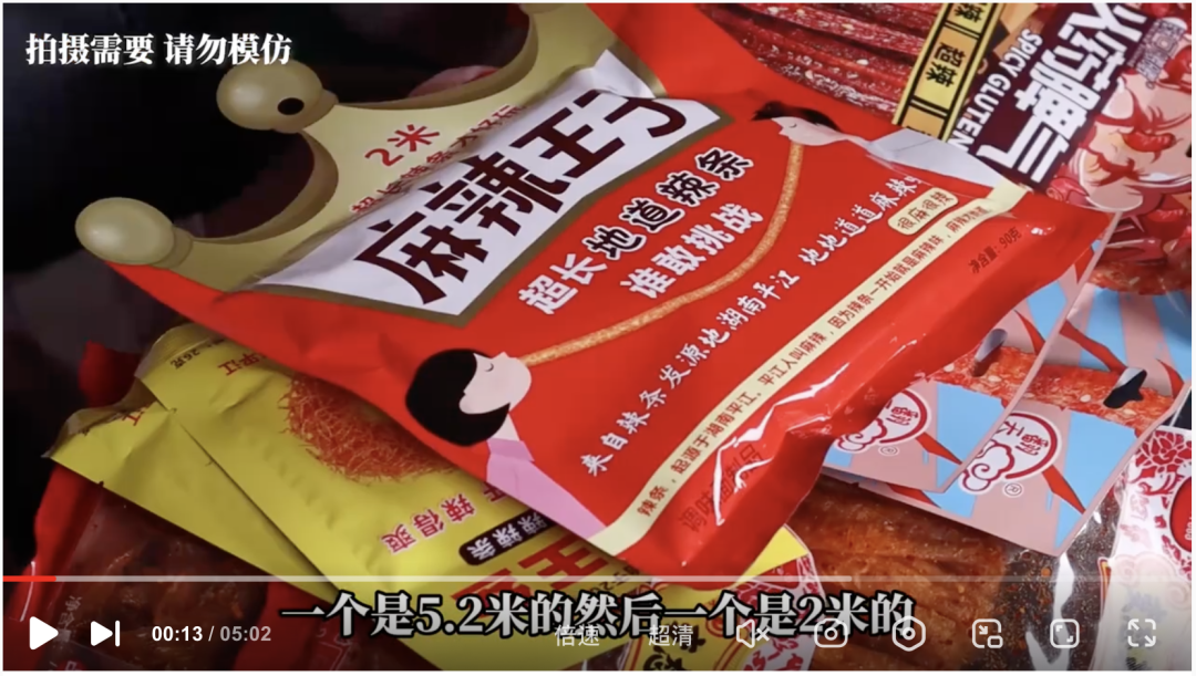 这也难怪网上的一些辣条测评中,不同品牌的辣条能摆满一整张桌面甚至堆起来。