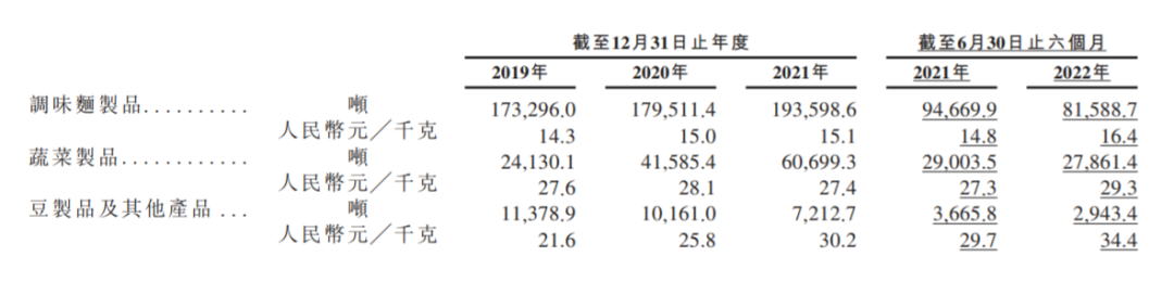 招股书显示,卫龙旗下的三大主要产品——调味面制品、蔬菜制品、豆制品及其他产品的售价均有不同程度的上涨,其中,营收占比最大的调味面制品,即辣条,涨幅8.6%,蔬菜制品涨幅6.9%,豆制品及其他产品涨幅最大,达到13.9%。