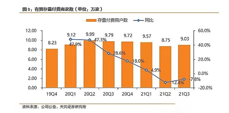 说到商家,尽管三季度财报显示的新增付费商家数量可观,但总体来看却不乐观。