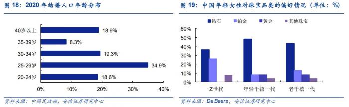 尽管目前我国婚恋市场的主流仍是黄金,但考虑到我国年轻群体压倒式偏爱钻石珠宝,可能加速“追赶”国际潮流,推动钻石珠宝市场进一步扩容。