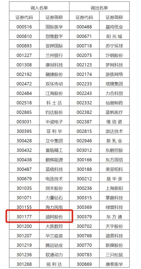 11月28日,深交所官网发布公告称将于2022年12月12日对深证成指、创业板指、深证100等指数实施样本股定期调整,此番迪阿股份获调入。对于迪阿股份来说,无疑是重大利好。近期迪阿股份也迎来多日上涨。