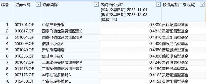 对比之下,主动权益基金虽然在分红的次数和金额上少很多,但单只基金发起红包来也是相当的大方。11月以来(截至12月8日),有17只主动权益基金的分红金额超过亿元。