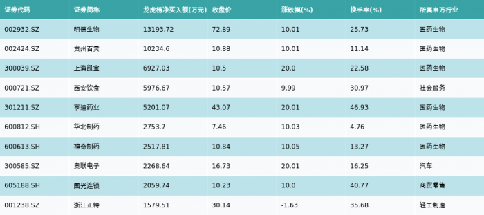 (12月12日,下同)龙虎榜营业部净买入额前10详情见下表: