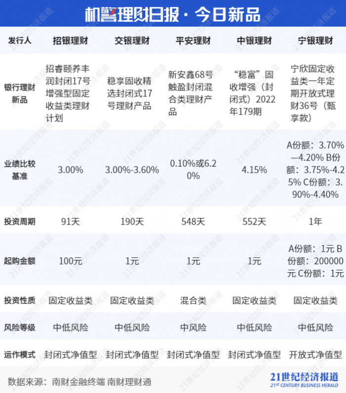 《机警理财日报》是南财理财通、21世纪经济报道旗下投资理财、财富管理特色栏目,旨在帮投资者守好“钱袋子”,并创造更高的行业价值。