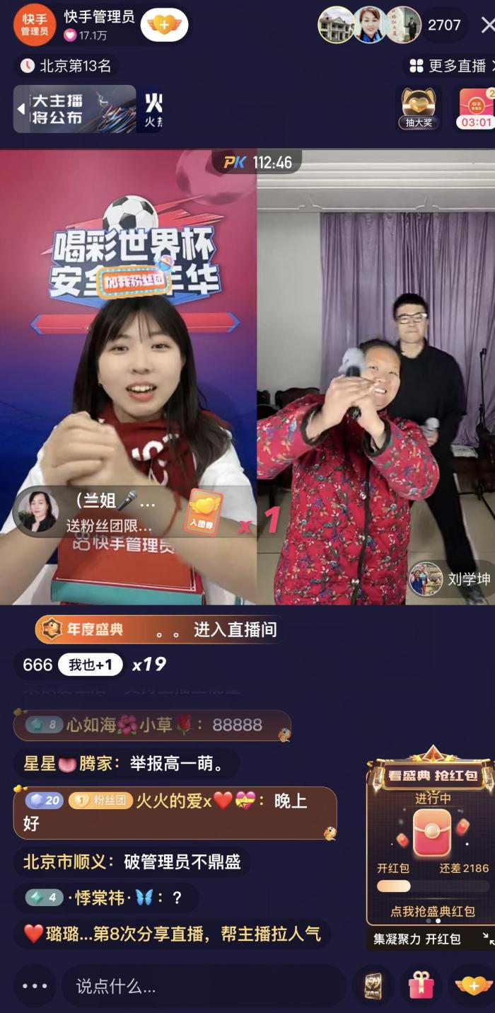 快手管理员直播连麦各路达人,畅聊安全世界杯