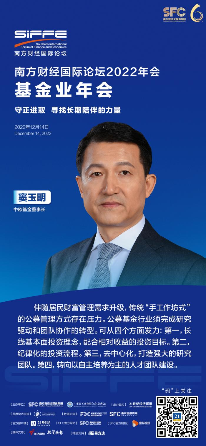 12月14日,由南方财经全媒体集团、广东省工商业联合会主办,21世纪经济报道承办,易方达基金特别支持的南方财经国际论坛2022年会——基金业年会以线上直播的方式隆重开幕。