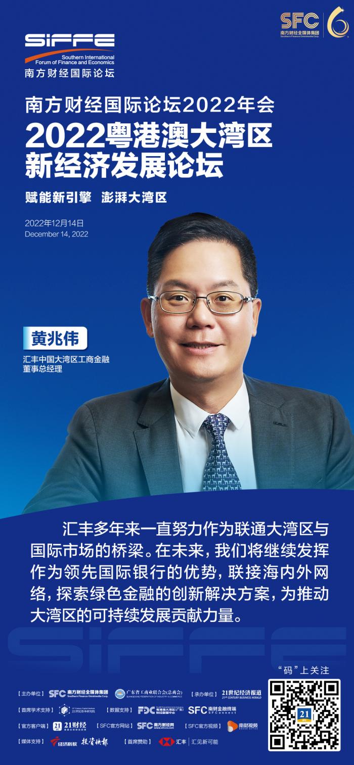 12月14日,由南方财经全媒体集团主办、21世纪经济报道承办、汇丰银行首席赞助的“2022年粤港澳大湾区新经济发展论坛”在线上举办。