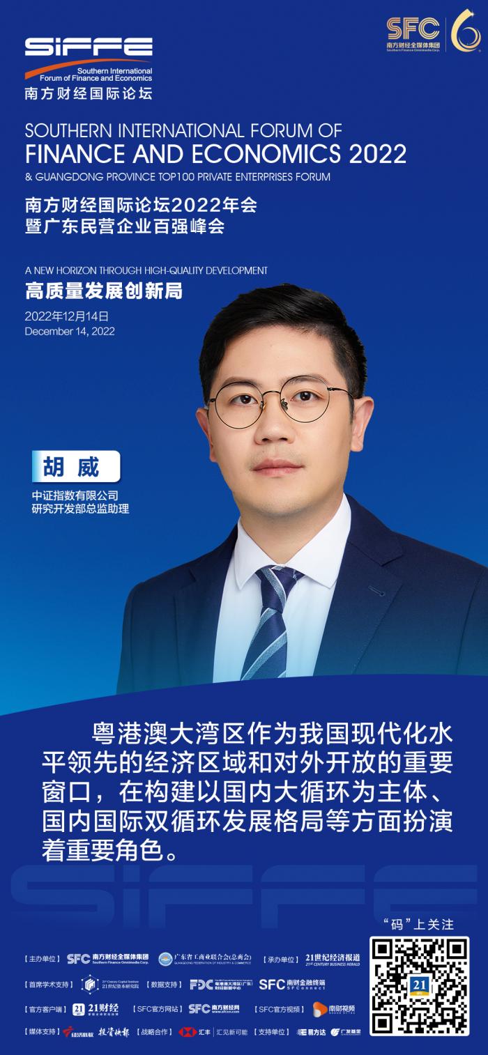 胡威表示,本次联合南方财经全媒体集团研究推出大湾区指数,旨在引导资源配置,助力湾区高质量发展。该指数系列主要包含了两条指数:一是“中证南财粤港澳大湾区指数”,指数简称为“南财大湾区”,综合反映粤港澳大湾区A股上市公司证券的整体表现;二是“中证南财粤港澳大湾区发展100指数”,指数简称为“南财大湾区发展100”,主要反映受益于粤港澳大湾区发展,且基本面较为优质的A股代表性上市公司证券整体表现。