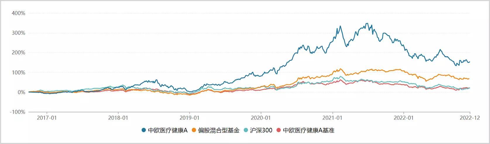 屋漏偏逢连夜雨,随着重仓股长春高新和通策医疗等的接连暴雷,更是加重了净值压力。中欧医疗健康累计涨幅从高点的348.29%回落至今年9月的132.8%,回撤幅度达61.87%,超过了近年来偏股混合型基金54.69%的回落幅度。