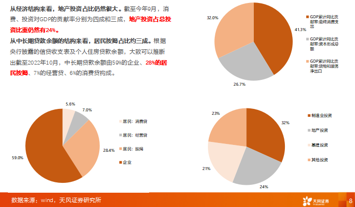 中长贷里居民按揭大约三成;地产投资占投资比例大约24%