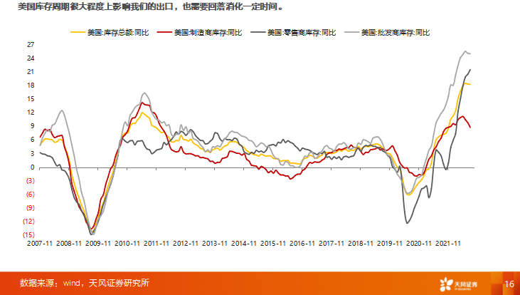 ①转折需要什么条件?在逆周期调节的主要工具(地产、基建)没办法力缆狂澜的情况下,需要国内库存周期出清、美国库存周期尽量降低。