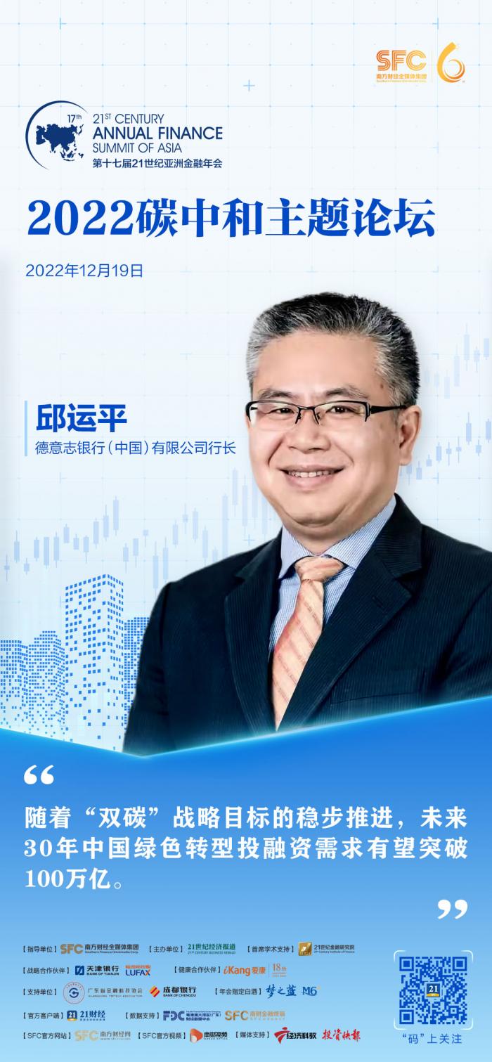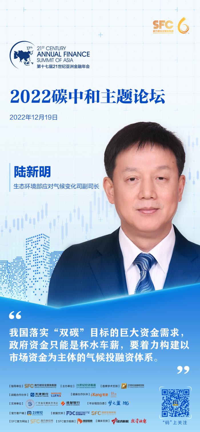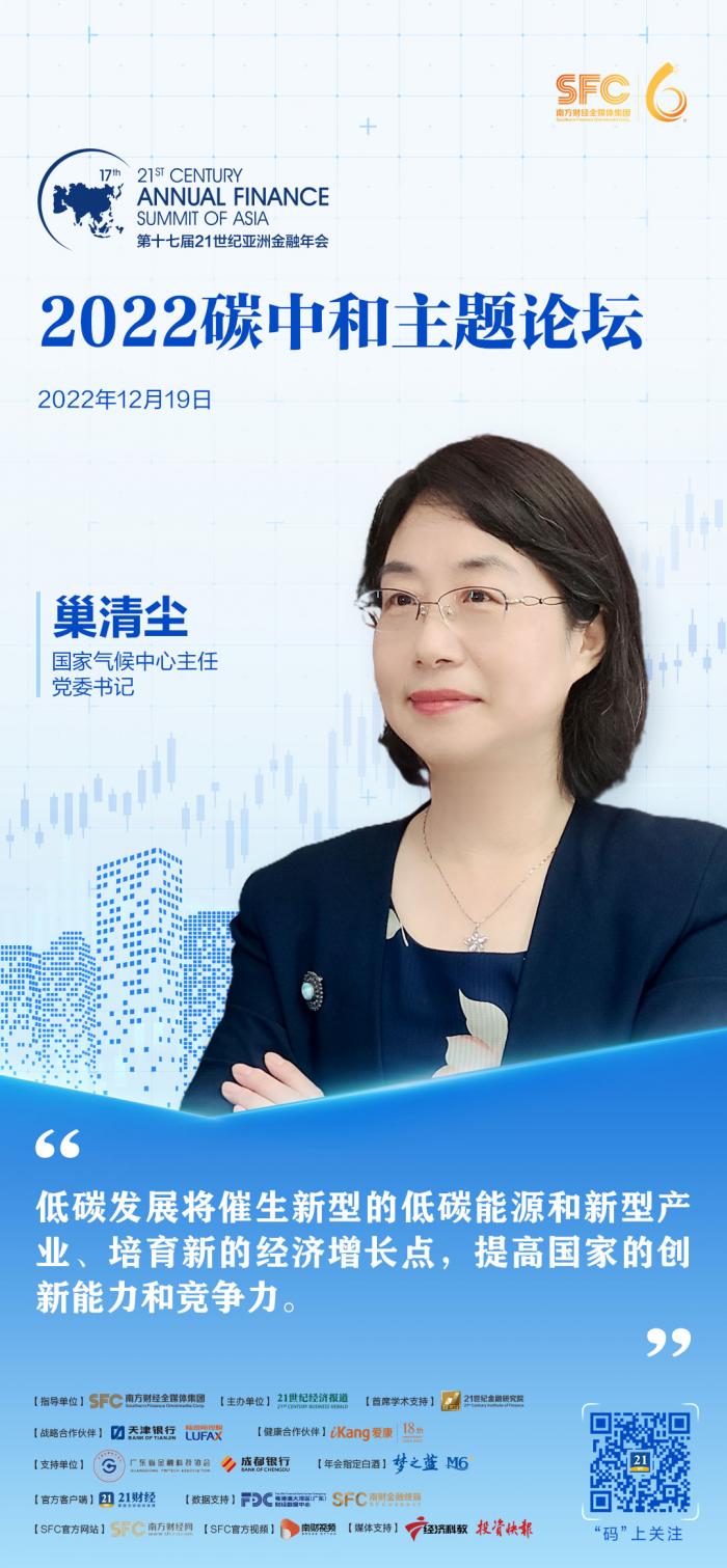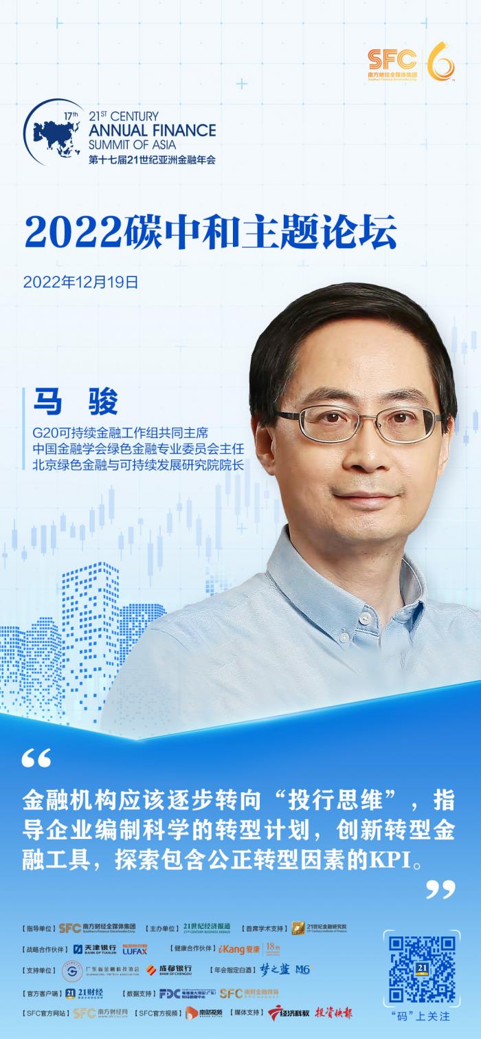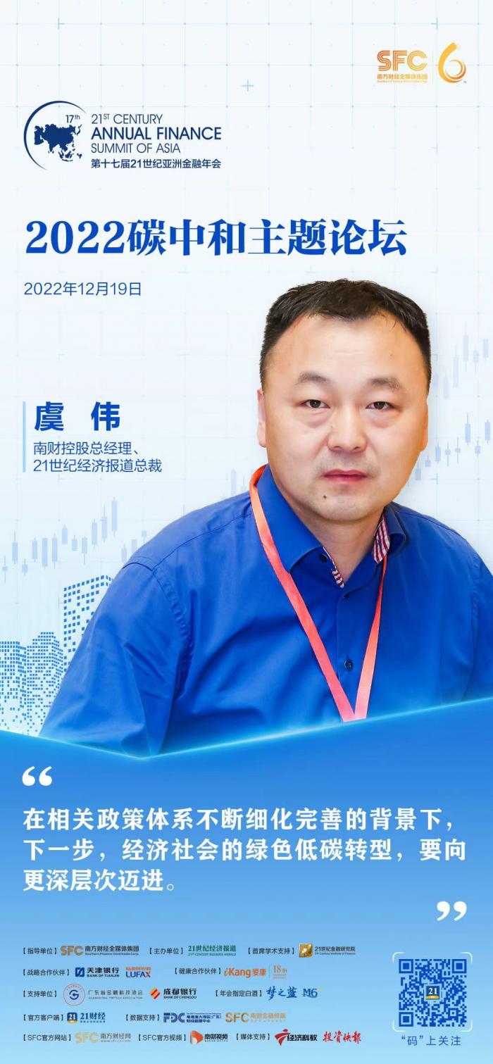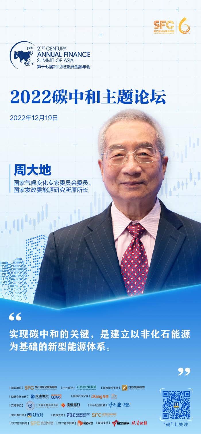 第十七届21世纪亚洲金融年会于2022年12月19日-23日在线上举行,会期5天。第一天举行的是2022碳中和主题论坛,论坛主题为“‘双碳’从目标到落地,如何发现新价值、新机遇”。