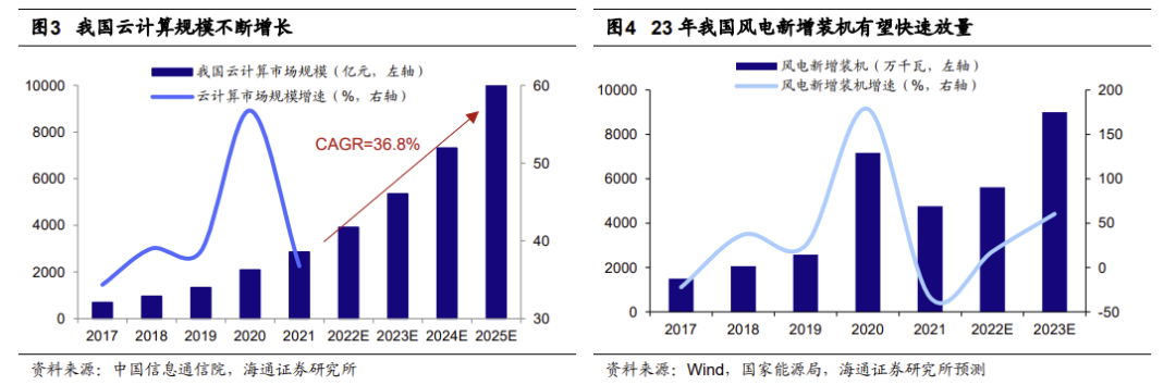 新能源方面,会议要求加快新能源、绿色低碳技术的研发和应用,支持新能源汽车消费。“3060”双碳目标下我国新能源产业依然是发展重点,政策支持下第二批风光大基地项目已陆续开工,第三批项目正在抓紧审查,我们认为这将推动光伏风电装机持续放量,我们预计2023年风电新增装机有望达90GW,较2022年增长60%。随着光伏风电装机量的增长,储能也将配套发展,根据中关村储能产业技术联盟预测,2023年中国电化学储能累计装机量增速将达82%。根据中汽协,11月我国新能源汽车渗透率已达33.8%,随着新能源汽车渗透率的不断提升,产业趋势将从电动化向智能化演进,新能源车产业有望从硬件制造逐渐向软件和生态演变,智能座舱和自动驾驶领域发展有望加速。