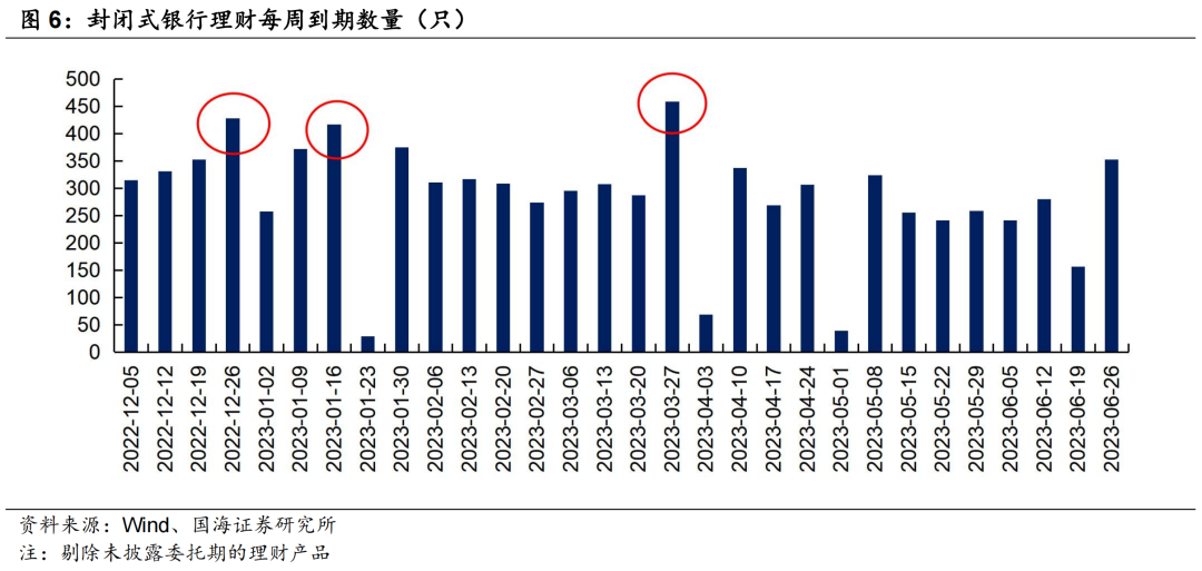 12月上中旬债市持续震荡,银行理财破净率大幅上升,散户投资者赎回意愿增加。从封闭式银行理财到期数量来看,2022年最后一周、2023年一月中旬、2023年3月最后一周仍有三波理财到期高峰。
