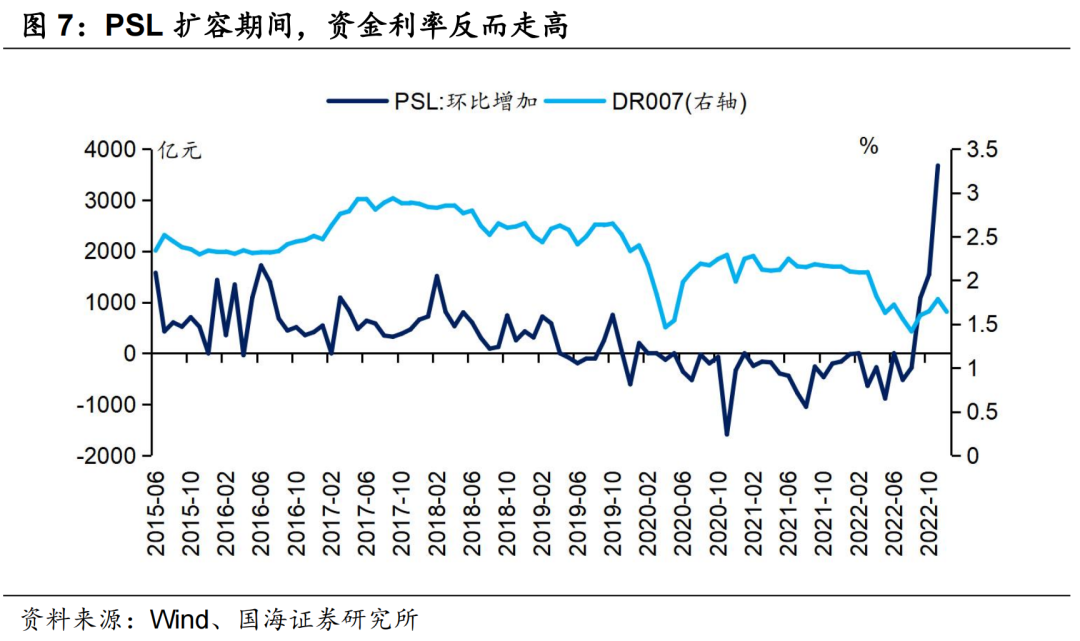 对债市而言,PSL、再贷款工具“宽信用”属性更强,对债市偏利空。尽管同样起到货币投放的效果,相比降准“先投放货币、后贷款”的形式,PSL、再贷款工具“先贷款、后投放货币”的形式“宽信用”属性更强,并且资金成本较降准更高。从历史来看,PSL、再贷款工具扩容期间,信贷投放的加快使得资金利率和债市利率走高。