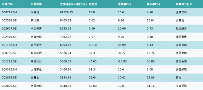 12月22日,龙虎榜营业部净买入额前10详情见下表: