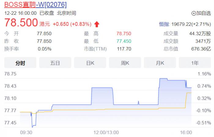 12月22日,BOSS直聘在香港主板完成双重上市,股票代号“2076”。