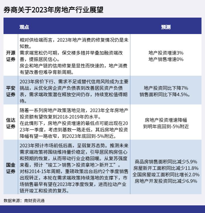 展望2023年,券商对于房地产行业的看法各不相同,但主要集中在供需方面: