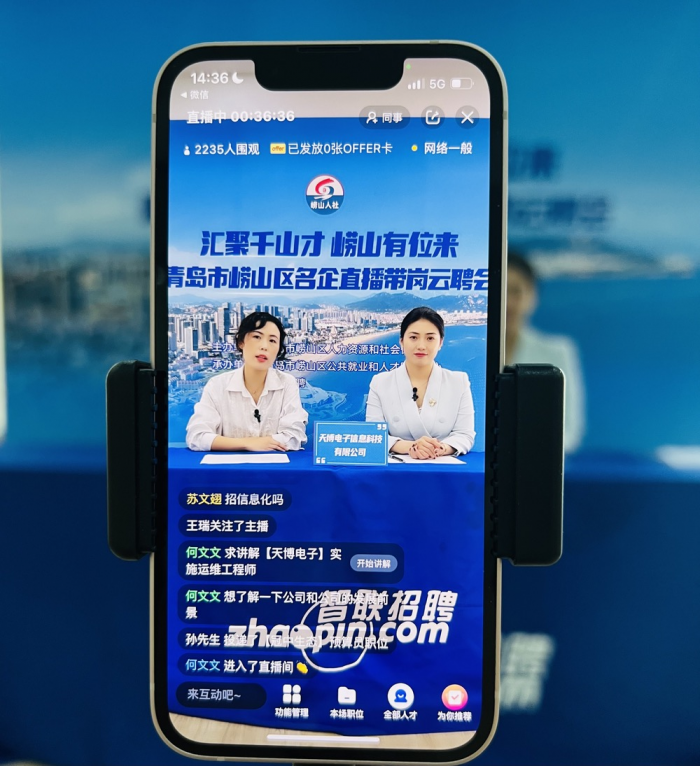 直播间内,主播们一如既往地卖力“带货”,他们不是在卖产品,而是各头部企业HR在推荐自家的招聘岗位,这一幕发生在崂山区。
