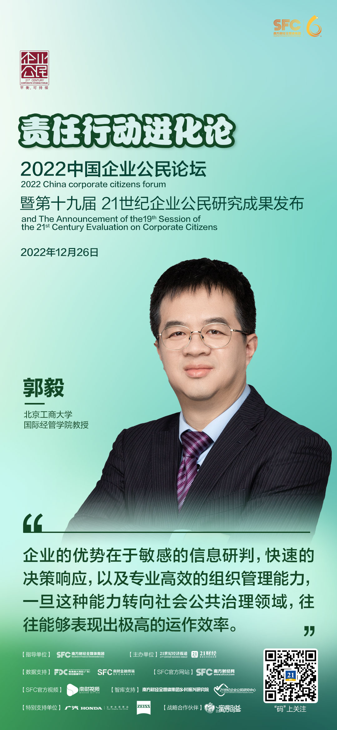 我们更应该认识到,相比于一些政府职能机构,企业甚至在某些社会治理领域更有优势。我们知道,企业的优势在于敏感的信息研判,快速的决策响应,以及专业高效的组织管理能力,这种能力源自于长期以来的市场磨练。然而,一旦这种能力由商业领域转向社会公共治理领域,往往能够表现出极高的运作效率,这是企业社会责任行动参与社会治理的突出特点。企业公民正与政府的公共管理职能一起,成为重要的社会治理力量。我们应该正确认知、激发、引领、规范这种力量,并将其纳入常态的社会治理体系当中。