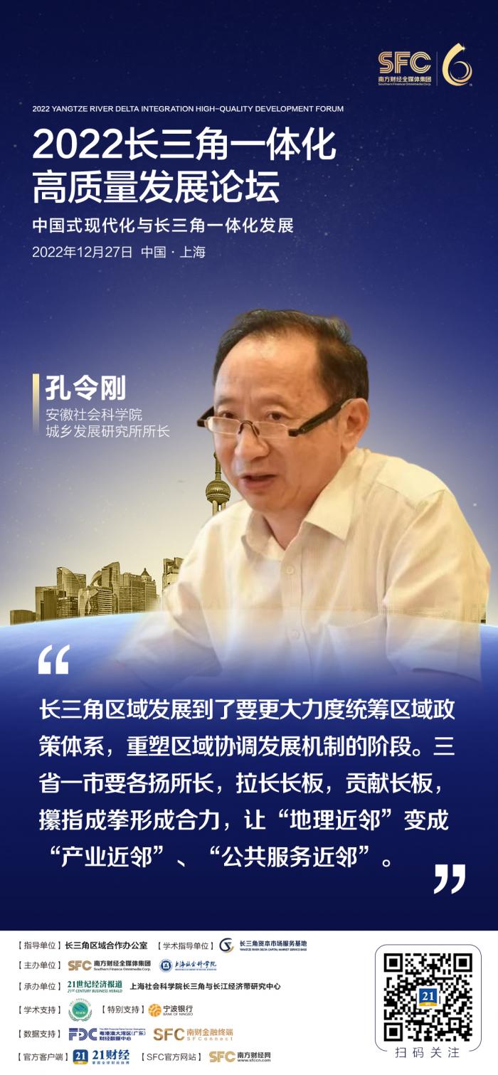 12月27日,由长三角区域合作办公室指导,长三角资本市场服务基地学术指导,南方财经全媒体集团和上海社会科学院发起并主办的“2022长三角一体化高质量发展论坛”在上海正式举行。安徽省社会科学院城乡发展研究所所长孔令刚受邀发表主题演讲。