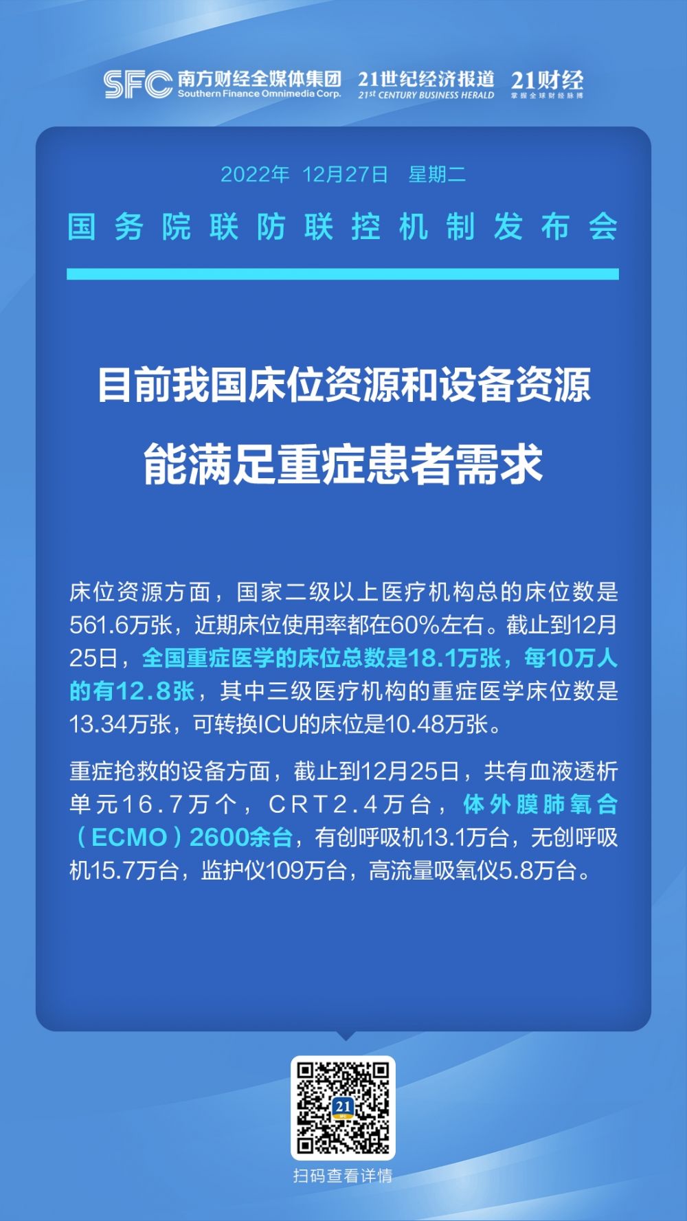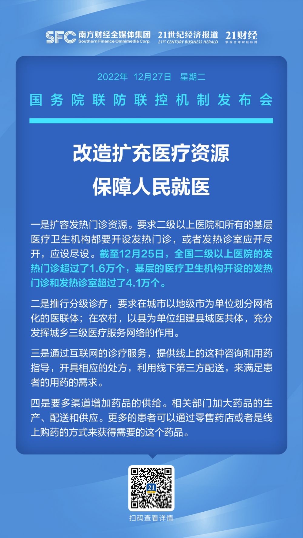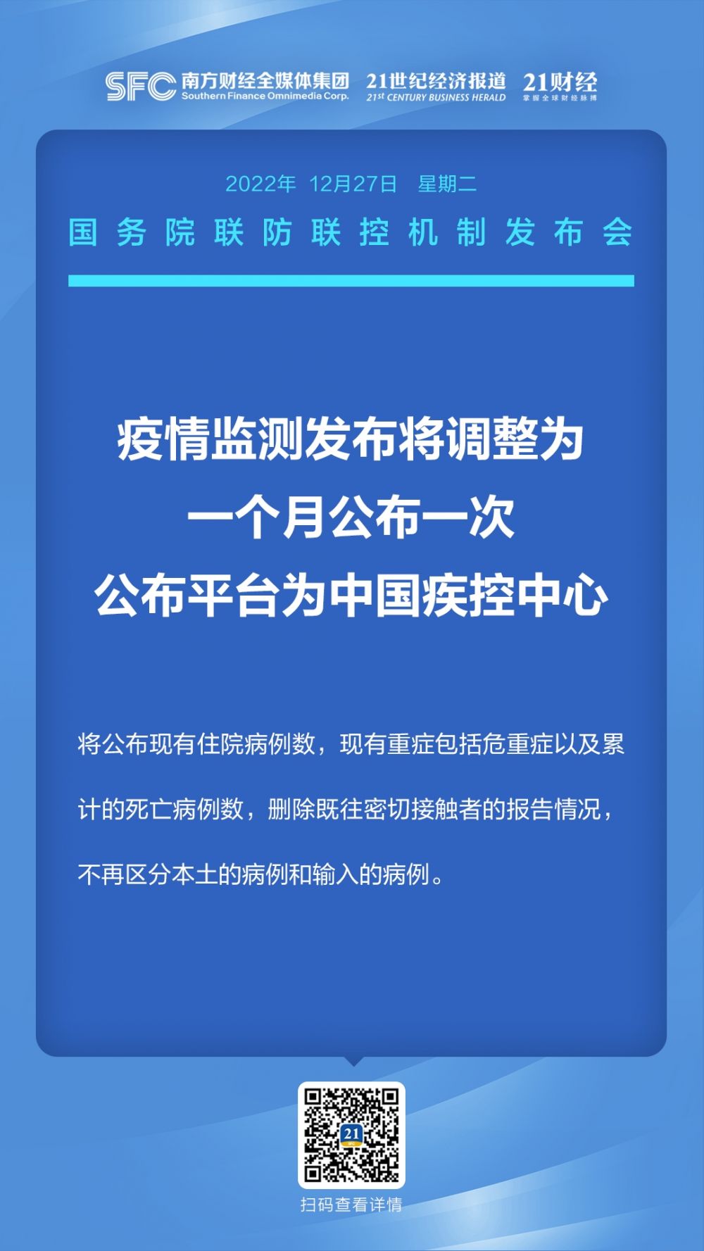 12月27日下午,国务院联防联控机制召开新闻发布会,介绍新冠病毒感染实施“乙类乙管”措施有关情况。