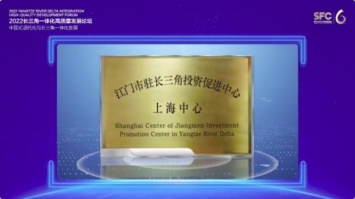 基于双方合作,江门市宣布成立江门市驻长三角投资促进中心上海中心,并在南方财经全媒体集团上海区域总部挂牌。