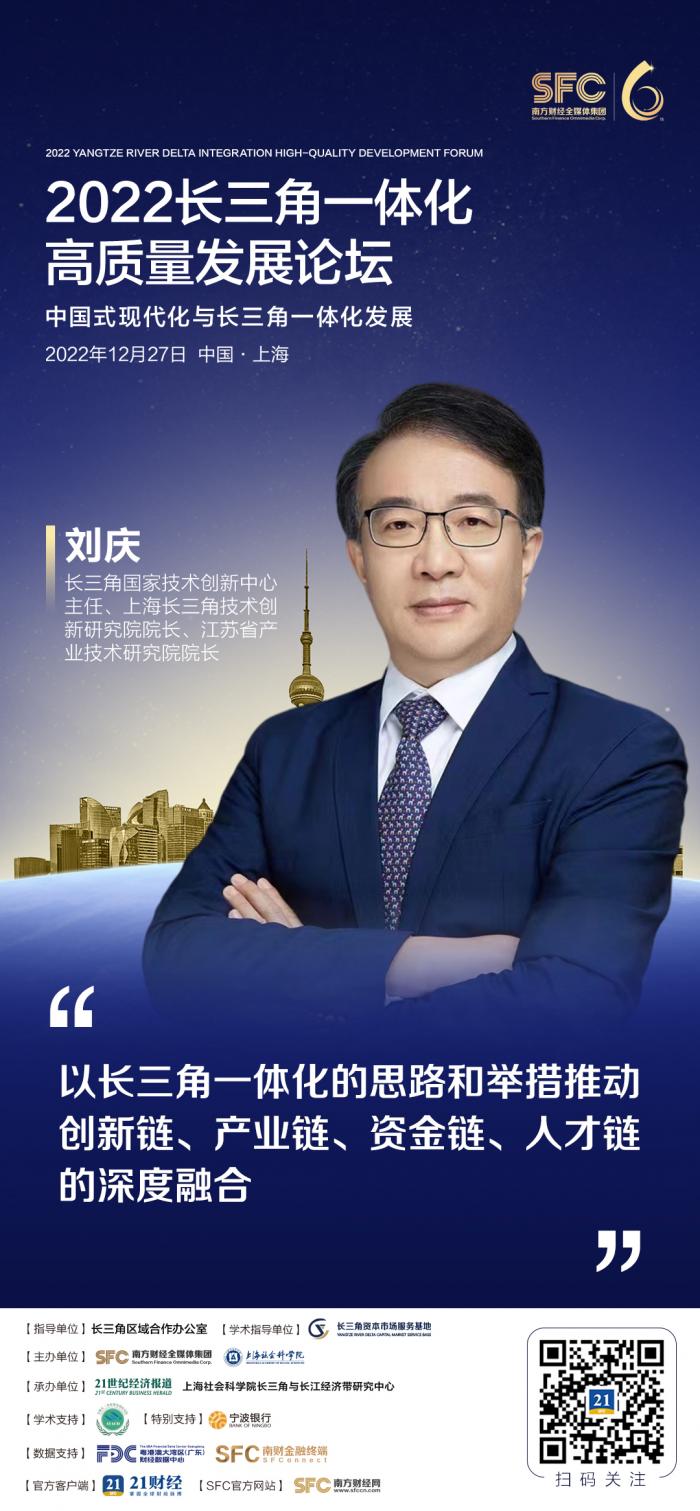 长三角论坛丨长三角国家技术创新中心主任刘庆:以长三角一体化的思路和举措推动创新链、产业链、资金链、人才链的深度融合