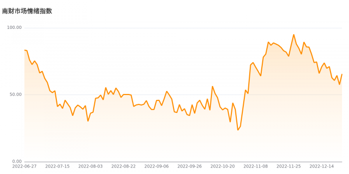 今日南财市场情绪指数为65.6,较前一交易日57.6大幅上涨,市场投资热度明显提升。