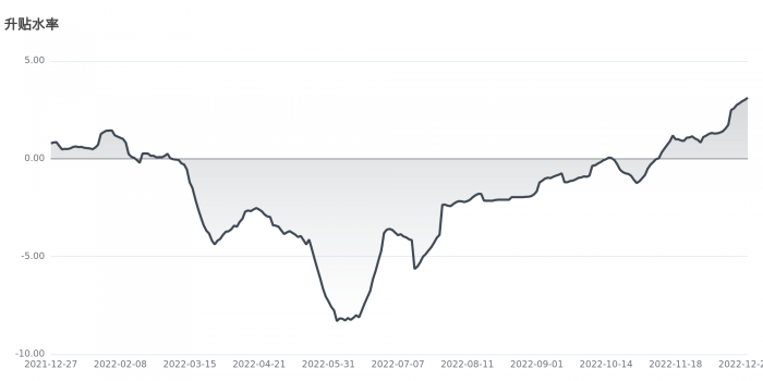 今日该指标值为3.12%,目前该指标处于近一年较高区间,说明投资者认为当前A股市场相对较强。反映期货市场投资者对市场的看法,该指标越高说明投资者认为当前市场较强,越低则说明认为市场相对较弱,因而与上证指数正相关。