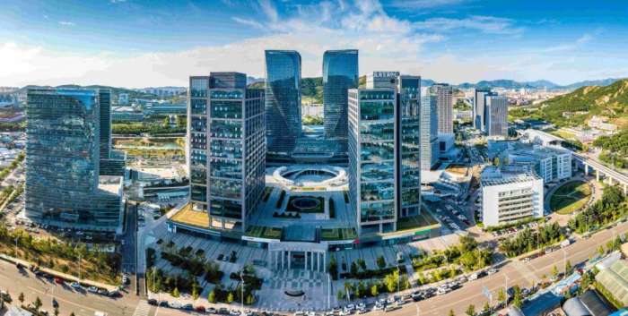 青岛金家岭金融法务区,聚焦“核心平台、产业聚集、服务大局”,以青岛金融法务大厦为主核心,国信金融中心、上实中心等多个园区环绕,构建起高端要素牵引集聚、多元产业融合发展的“一主多园”法律服务生态圈。