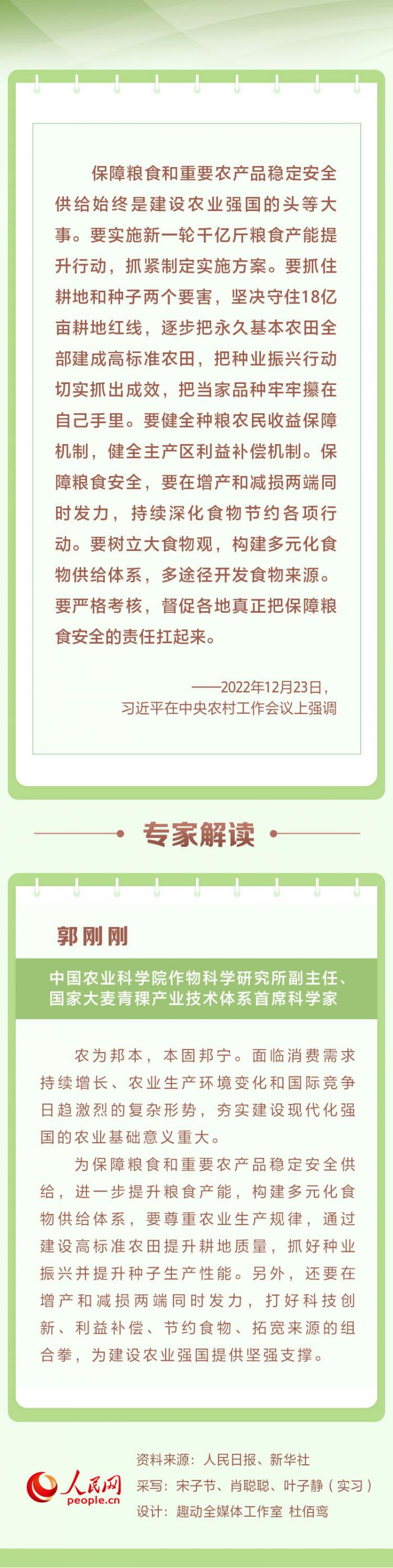 12月23日至24日,中央农村工作会议在北京举行。中共中央总书记、国家主席、中央军委主席习近平出席会议并发表重要讲话。人民网带您重温讲话要点并邀请专家进行解读。本期聚焦“保障粮食和重要农产品稳定安全供给始终是建设农业强国的头等大事”。