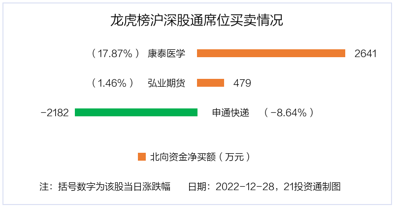 值得注意的是,机构和北向资金共同净卖出了申通快递;在康泰医学上出现分歧,机构净卖出康泰医学1551.61万元,北向资金净买入2641.3万元。