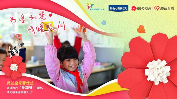 儿童营养健康一直是菲仕兰密切关怀的重点。今年99公益日,菲仕兰携手合作伙伴参与中国乡村发展基金会“爱加餐 一起捐”公益行动,为欠发达地区乡村儿童募集到5万多份营养全面的爱心餐食。