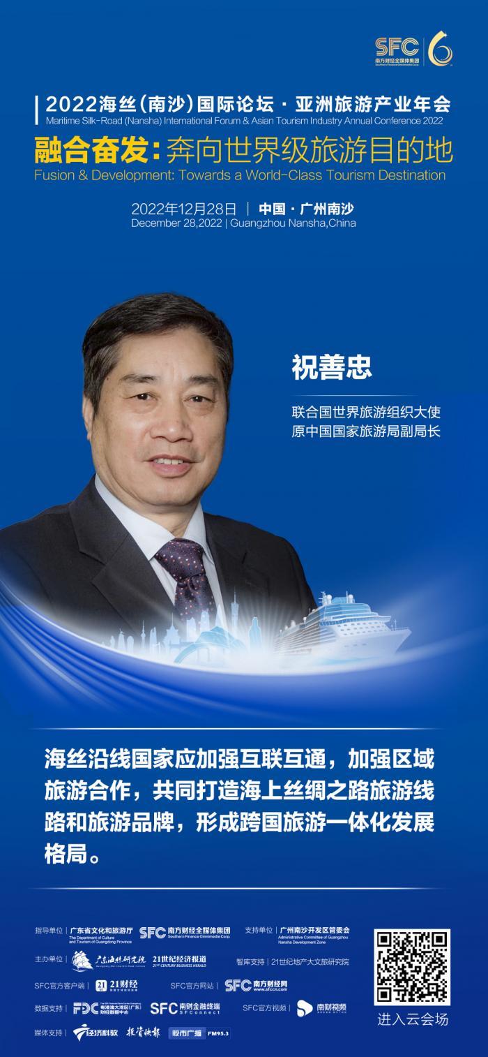 2022年12月28日,由广东省文化和旅游厅、南方财经全媒体集团指导,广州南沙开发区管委会支持,广东海丝研究院、21世纪经济报道联合主办的“2022海丝(南沙)国际论坛暨亚洲旅游产业年会”在广州南沙举行。