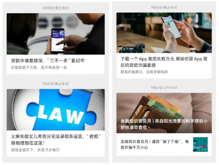 除此之外,维信金科还重视消费者教育,通过视频、图文、海报等形式,在微博、微信等平台向金融消费者宣传反诈知识、信用知识、金融常识等武装用户头脑,帮助金融消费者选择适合自己的金融产品和服务、增强风险防范意识和责任意识、倡导理性消费和合理借贷,以构建负责任、可持续的金融消费环境。