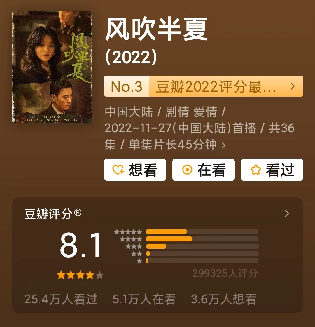 时代厚度、文化根基与精神底蕴,成就了今年最受好评的女性剧《风吹半夏》,爱奇艺对作品商业价值和内容筛选上的精准以及自身平台属性与用户习惯的捕捉,促成了平台内容在年底的回暖和收获。