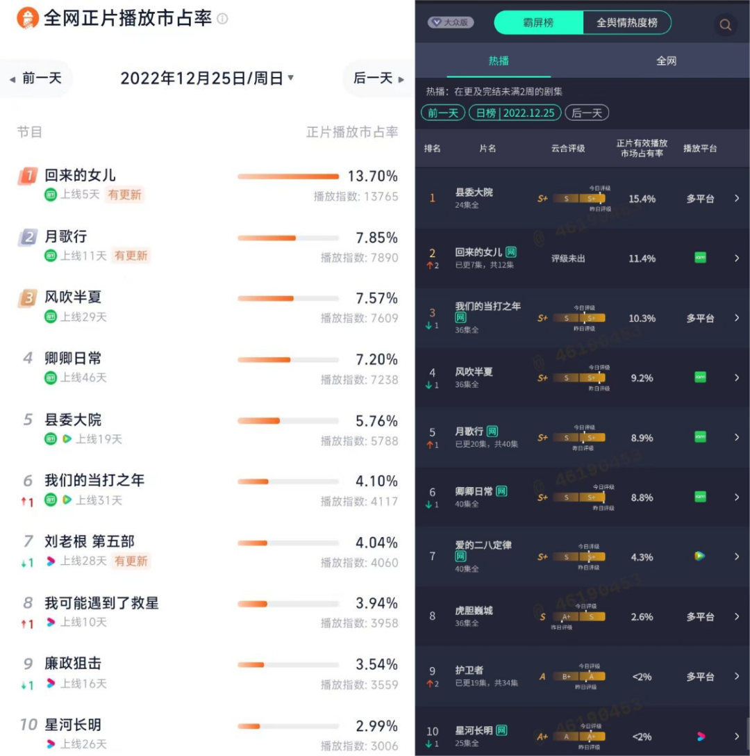 但是到了年末,爱奇艺多部作品表现抢眼,从各种第三方数据来看,市占率累计超过40%,掀起了新一轮的追剧热潮。