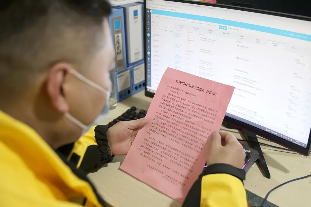 ▲美团骑手阅读慰问信“我们站内有75名骑手,目前全员在岗,每天可配送近3千单。十分感谢武侯区为咱们骑手提供的健康包,让大家在这个冬天感受到特别的温暖。我将把健康包发放到每一位骑手手中,让大家做好防护、保持健康,为市民提供周到的服务。”——美团红牌楼广场站站长吴云江