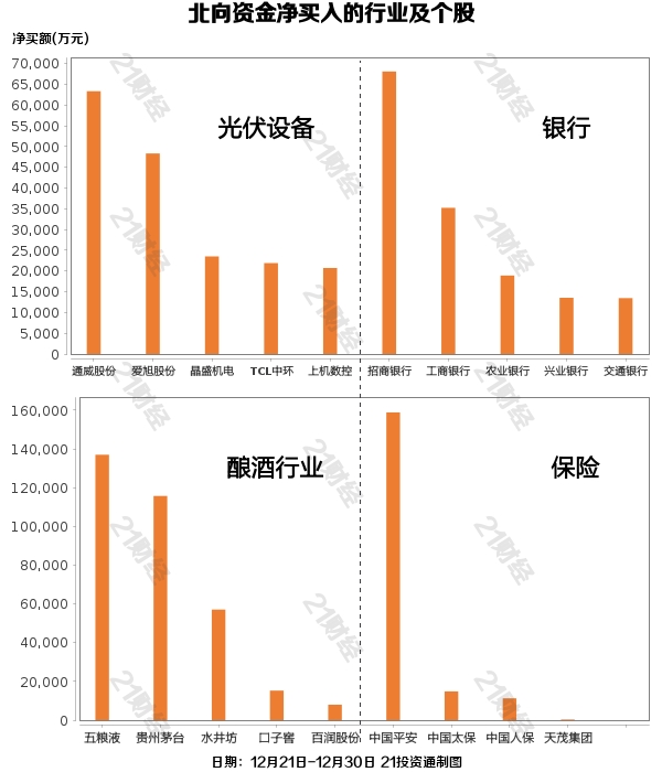 12月份以来,北向资金也仅有5个交易日录得净流出,其余时间均呈现净流入态势,全月合计净流入350亿元。