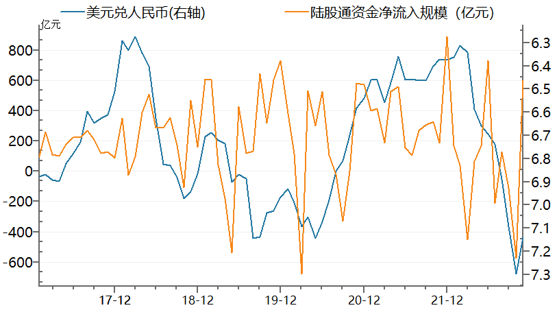 ▍图3:2023年人民币汇率企稳走强有望吸引陆股通资金回流A股