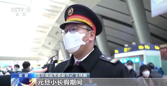北京南站党委副书记 王铁鹏:元旦小长假期间,北京南站日均开行列车166.5对,高峰日是2022年12月31日,共发送旅客10.26万人,主要集中在天津、济南、上海、南京等方向。