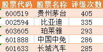 可以看出,前面提到的5个公司都属于“大消费”板块的个股,获得了最高的评级热度,这类个股受到了众多分析师的青睐。